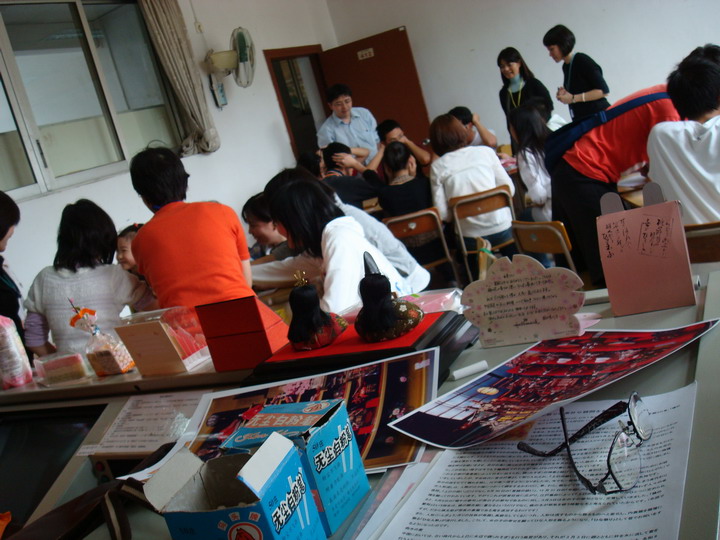 本网讯 4月1号下午,东语学院中日交流小组再度携手广州日本妇女会,开展第五届东语日本女儿节活动。日语系老师杜凡、冈泽成俊与09日语系学生参加了本次活动。
