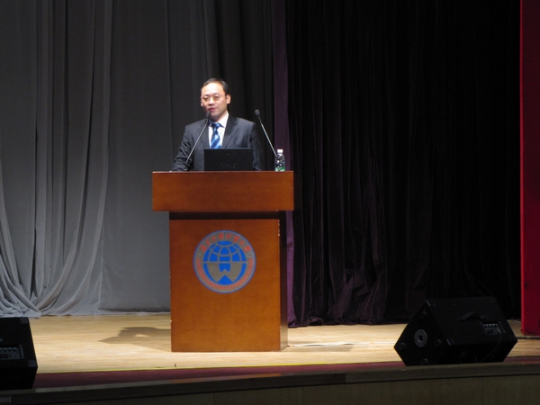 陈开举从成人学习外语的方法“优越法”,学院的教学安排以及对学员的希望和建议三方面为师生进行了讲解。陈开举对由他主创的“优越教学法”进行了系统的介绍,这其中包块有效的输入和仿真的操演两部分,结合学院的教学安排,以培养学习目标为中心,创造全天候的学习环境和仿真的语言环境,使学员能够完全浸泡在英语的世界里,从而快速提高英语水平。最后,他还对学生们提出了三点建议:一、聚神(痴迷),用“生命—时间—注意力—意志力—理想—趋利”这个公式督促学生发现学习的动力,抓紧时间学习;二、祛魅(自由),建议大家以自我为主,摒弃自卑情结,解放心灵。三、借光(提速),充分利用老师、同学、社会、设施以加快实现理想的进程。