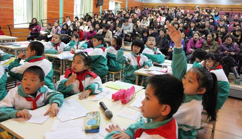 本网讯 12月30日,来自湖南、山西、江苏、浙江、青海、甘肃、新疆以及广东省周边兄弟学校等160多名来宾莅临附校参观、观摩、座谈和访问。附校同学们丰富的课外知识积累和自信大方、积极乐学的态度,老师的课堂设计、调控和鼓励,让大家看到了“横看成岭侧成峰,远近高低各不同”生本教育成效。