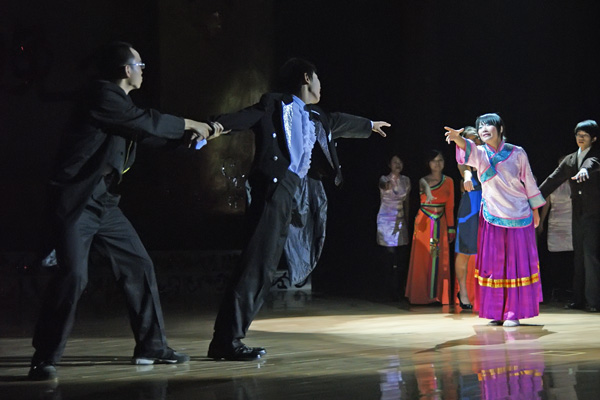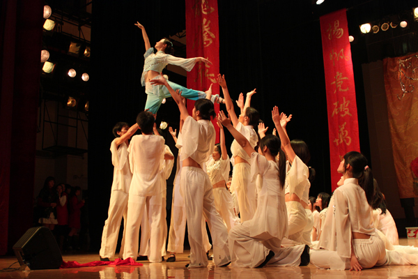 惊艳的法学院模特队开场秀之后,一轮又一轮的视听盛宴铺天盖地而来。许多形式独特的节目成了此次演出的一大亮点。色彩斑斓的服装秀《多彩中华》把观众带进了奇异的3D影像博物馆,在这里,观众可以领略到中华民族泱泱千年的服装特色。无论是经典的唐装,还是清朝的宫廷服饰,无不映衬出古代中国的繁盛;而革命时期的绿军装、五四时期的学生装、现代的白领装束和时尚服饰,则从另一种角度反映出中国六十年来的经济巨变;表演者跳着轻快的舞步将傣族、朝鲜族、苗族等少数民族服饰一一呈现在观众面前,五十六个民族友好团结、其乐融融。