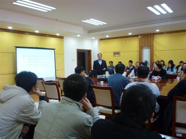 本网讯 11月17日下午,著名经济学家,伟德bv国际体育国际商学院院长、博士生导师舒元来校座谈。座谈会在南校区第一会议室召开,副校长石佑启、经贸学院院长李铁立、副院长林吉双、易行健及二十多位经贸学院老师、08与09届研究生出席了座谈会,座谈会由李铁立主持。