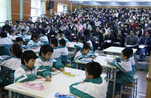 梁海文、冉红梅、李群、张秀琴、刘欣、彭文健等老师分别向来宾展示了英语、语文和数学生本课堂。听课者纷纷表示,附校的“生本”课堂“有活力”、“很生动”、“令人激动”,学生高度的积极性让他们深受感动。