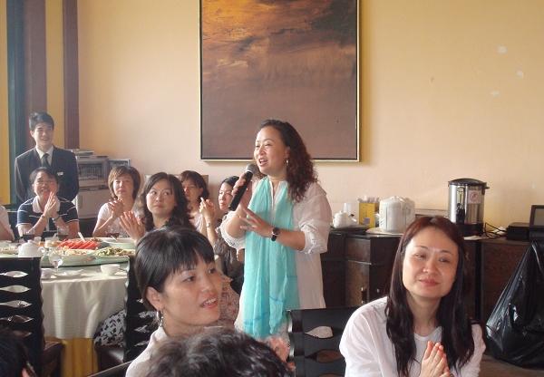 校友杨莹高歌一曲,校友们举手打拍