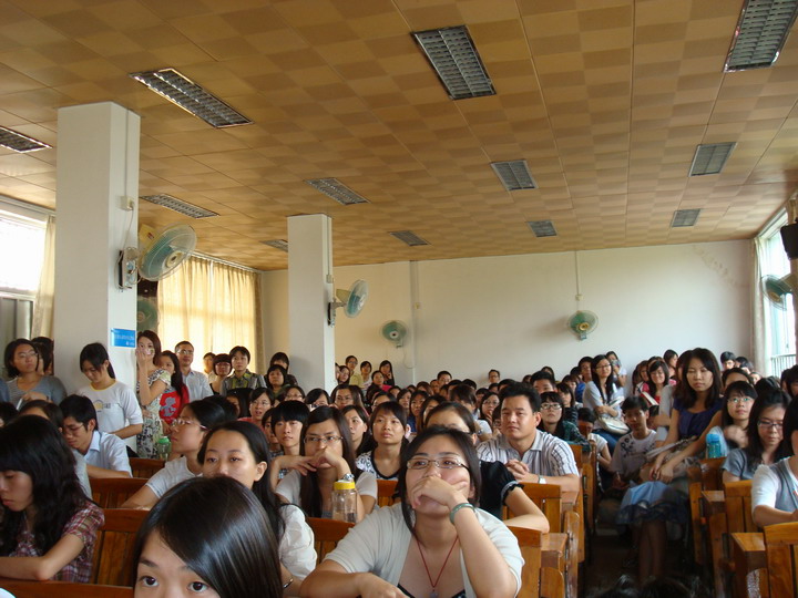 记者到场时,602室早已是座无虚席,并且还有同学不断涌入。很多同学不得不站在过道聆听讲座,站得累了就蹲下甚至直接坐在地上,场面非常火爆。