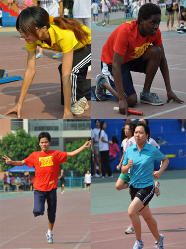 百米飞人大战为运动会鸣响了第一枪。一声哨响,运动健儿如急箭离弦,勇往直前。从起点到终点,虽然只是那短短的十几秒,但他们那闪电般的身姿告诉我们:这就是商英速度!激烈赛况点燃现场气氛,让运动员和啦啦队都迅速进入了最佳状态。