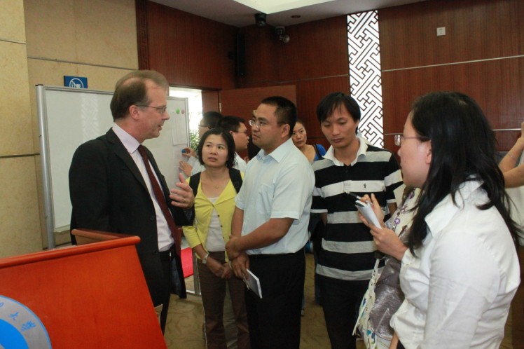 讲座结束后,中心执行主任孙建军与考文垂商学院副院长Dr.Don Finlay就广外MBA与考文垂商学院进行学生交换和教师互访等国际合作进行了会谈并达成共识。Dr.Don Finlay表示,广外MBA学生表现非常出色,他们的热情和活跃给他留下了深刻的印象,他将尽全力推动双方的国际合作。