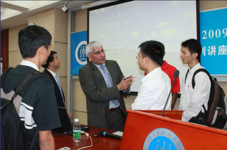 首次做客广外MBA教育中心的Dr.Shinder S. Thandi毫不掩饰自己对中国经济发展的赞誉和期待。他以 “全球化和中国:机遇与挑战”为题目,回顾了中国经济在全球化进程中的发展及影响,着重讲述改革开放和后WTO时代中国经济面临的机遇和挑战。他认为,中国渐进式的改革开放政策值得其他国家借鉴,外国直接投资从沿海地区逐步向西部地区转移,推动从沿海到西部的发展。加入WTO以后,中国政府不断加强对全球化的推动,中国的经济发展模式对全球经济发展的借鉴意义。Dr.Shinder S. Thandi同时指出,目前,中国面临面临着国内地区经济发展不平衡,农村与城市收入差距大等问题,而对外竞争中,中国依赖低成本劳动力的优势正在丧失,面临越南等国家的剧烈竞争,中国需寻找新的经济增长点和竞争优势。而金融危机后的贸易保护主义抬头也将给中国发展带来巨大的挑战。