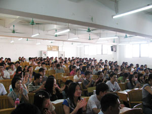 本网讯 10月15日下午2:3 0和晚上7:00,公开学院学风建设动员大会分别在夏茅校区第一教学楼212室和校本部云山会堂召开。院长何勇斌、副院长任跃忠、院党委副书记苏冬燕出席了动员会,教务办、学工办、各系主任、副主任以及全体学工老师、辅导员助理、学生党员、各班班长参加了动员会,会议由学工办主任莫振华主持。