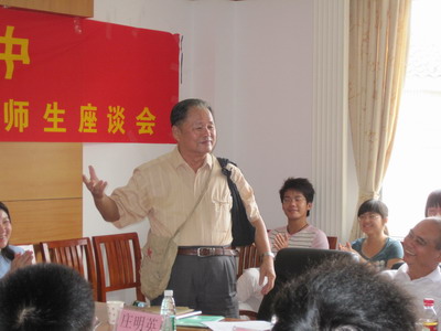 本网讯 2009年9月22日下午15:00—17:00,政治与公共管理学院“老中青三代”,欢聚学院会议室,以“祖国在我心中”为主题举行庆祝新中国成立60周年师生座谈会,畅谈新中国伟大成就,展望祖国更加美好的明天。特邀嘉宾有原广州外语学院党委书记、离休干部庄明英,校关工委主任、原校党委宣传部部长、社科部主任冯益谦,原政管学院党总支书记杨述池。学院党委书记范静静、副书记麦培年、教师代表、研究生代表、本科生党团学骨干代表共46人出席了座谈会。座谈会是政管学院庆祝新中国成立60周年系列活动之一,由学院党委副书记麦培年主持。