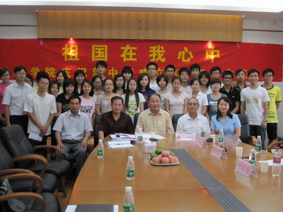 在会议的最后,学院党委书记范静静老师做总结讲话,她首先谈了自己对老领导和同学发言的感想和共鸣,同时讲到今天的座谈会使我们每位在座的成员精神上思想上经历了一次洗礼和升华。她在讲话中还谈到,新中国六十年光辉岁月,六十年沧桑巨变,这六十年是奋斗的六十年,是探索的六十年,也是自强的、自豪的六十年。新中国成立六十年来,中国共产党领导全国各族人民创造了一个又一个奇迹,我们从中看到了共产党的伟大,看到了社会主义制度的优越,看到了中国模式的魅力,更看到了中华民族无限美好的发展前景。因此,我们没有理由不深深地热爱伟大的祖国,没有理由不为伟大祖国更加美好的明天而发愤学习、发愤工作。她还即兴作了一首小诗来表达自己对祖国60岁华诞的喜悦之情: