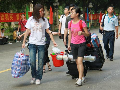 9月6日新生正式前来报到。骄阳烈日,酷暑难耐,但院长刘岩,党委书记何洪亮,党委副书记何伟儒,团委书记陈怡西,06级、07级、09级辅导员苏奕、赵观音、赖志玲仍然亲临报到现场指导工作并与新生及其家长亲切交流;迎新志愿者们满怀热情、不畏酷热,为各位新生和家长提供细致周到的服务,欢迎新生们加入英文学院大家庭。