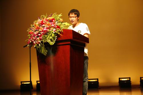 老师的殷切问候之后,迎来的师兄的祝福。06级艺术设计专业的同学作为老生代表与新生们分享了她大学三年多来的感受,并建议2009级的新生们提前做好准备,迎接大学生活的新起点,根据专业的性质,作出合理的规划与定位。最后,他祝福每一位师弟师妹能在广外艺术的殿堂里找到自己为之奋斗的目标。