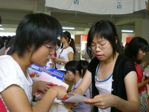 作为志愿者的一员,08级日语的黄丽斯6点多就来到了迎新现场。她表示,在迎新高峰期志愿者们甚至忙都忙不过来。当问及报名参加志愿者的原因时,她表示,因为去年报到时就得到了很多师兄师姐的帮助,所以她希望可以把这个工作继续下去,让更多的人都能感受到前辈们的关怀。