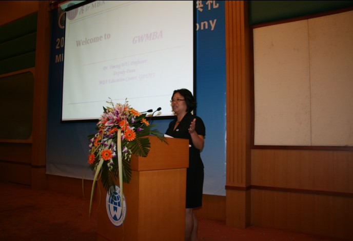 接着,曾用强向新生们介绍了广外研究生教育的发展历程。他表示,广外的研究生教育已完成从单一的外语学科教育到多学科教育的转变,他对MBA教育中心对广外研究生教育所作出的贡献表示衷心感谢。同时,他希望同学们能利用广外MBA这个平台,实现从人才到稀缺人才的转变,师生同力将MBA教育打造成广外第二张名片。
