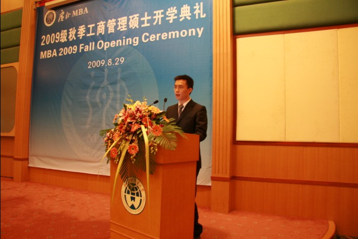 本网讯 8月29日上午,伟德bv国际体育2009秋季MBA开学典礼在行政楼国际会议厅隆重举行。副校长石佑启,研究处处长曾用强,工商管理学院院长杨晓燕,MBA教育中心执行主任孙建军、副主任吴易明、主任助理马绍壮等出席典礼。MBA中心任课教师代表应邀出席。典礼由孙建军主持。