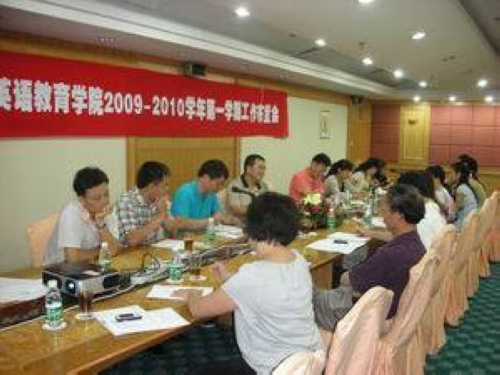 本网讯 8月31日和9月1日,英语教育学院2009-2010年第一学期工作布置会在顺德碧桂园度假村B2会议室举行。学院院长周富强,学院党委书记袁长青,学院教学副院长董金伟,学院行政副院长刘会英,学院党委副书记易宗勇,学院办公室主任曾国华及学院党委委员,各系部主要负责人和学院工会负责人出席了会议。会议由周富强主持。