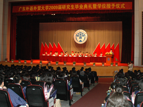最后,全场再次响起《凤鸣岭南》,为2009届研究生毕业典礼暨学位授予仪式画上圆满句号,为2009届广外研究生扬帆起航吹响号角。