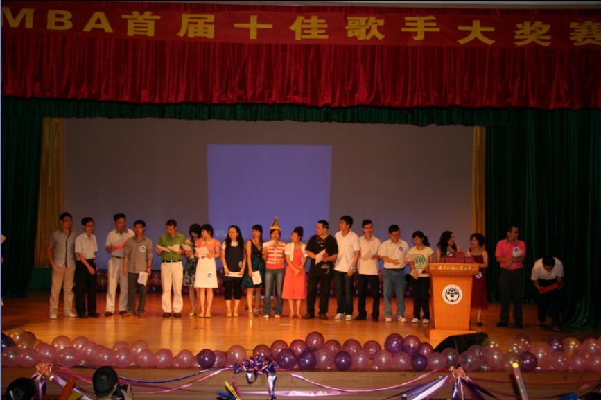 本次比赛共设有最佳歌手奖、最佳粉丝奖、最佳组织奖等多项奖项。经过激烈的选拔,08D班的郭洪龙、09A班的梁靖等10位同学脱颖而出,获得了首届MBA十大歌手的称号;09A班获得最佳粉丝团奖等团体奖项。