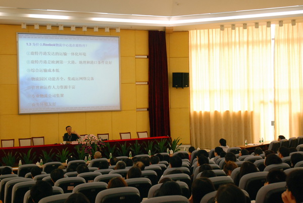 “物流服务选择多样、基础设施完善、交通网络发达、运输一体化是鹿特丹港竞争优势!”黄有方说。他以世界知名体育用品公司锐步选择鹿特丹港为物流中心的案例入手,从多方面剖析欧洲第一大港口鹿特丹港高水平的物流配置。他表示,鹿特丹港的海运、河运、空运、铁路公路选择多元化,其网络覆盖全欧洲,甚至辐射全世界,从而为客户提供多渠道、低成本、高效率的物流服务。