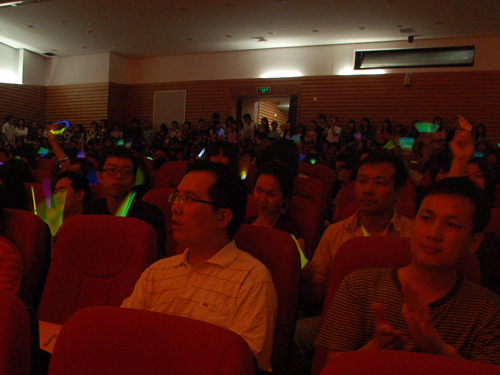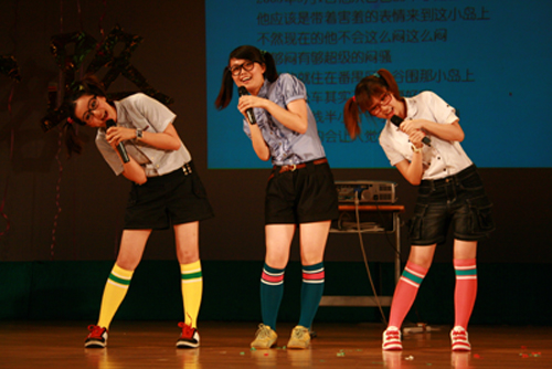 《Your Story My Song》带来了感动的时刻。一曲曲催人热泪的歌曲,唱出了05级毕业生的心情,唱出了同学间4年大学生涯的颂歌,尽显深深情愫。《戏说广外》则从调侃诙谐的角度道出了同学们在广外生活四年的喜、怒、哀、乐。“英文三宝”带来的动感歌曲以俏皮风趣的歌词细数广外学子的生活点滴,幽默之余流露出对母校的深厚感情。