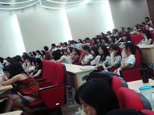 讲座一开始,徐昶斌首先送给同学们一句话:“选择,只有靠自己!”他解释道,英文学院07级的同学即将面临专业方向分流,他认为同学们做选择时应该首先考虑自己的兴趣和特长,盲目跟随社会潮流是不可取的。