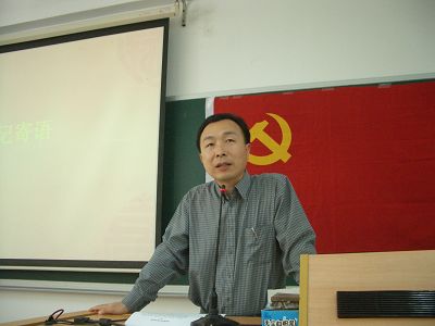 本网讯 5月12日上午,法学院党委书记金良成、党委副书记卢海清、教授孔庆山、05级辅导员朱海龙以及法学院2005级近百名毕业生党员共聚一堂,举行“为党旗添彩,为母校争光”主题教育大会。
