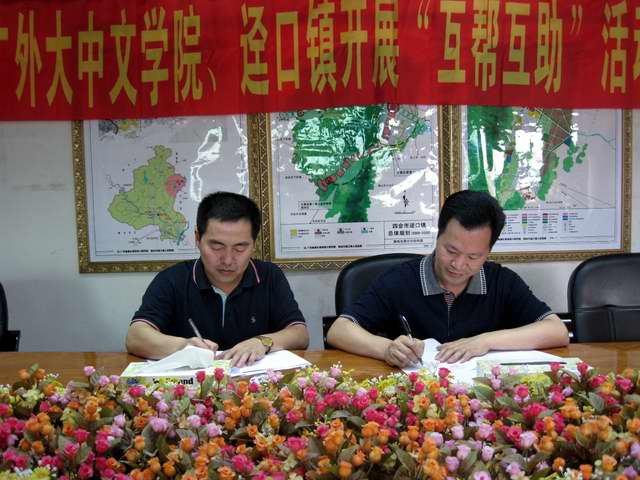 本网讯 5月8日上午,中国语言文化学院党委书记蒙德红,副院长陈彦辉、魏慧斌,副书记周秀娇等到广东省四会市迳口镇镇政府与当地领导举行了座谈会,进一步深入调研对口村的情况,就暑期三下乡的具体工作做了沟通落实并签订大学生社会实践与专业实习基地协议。