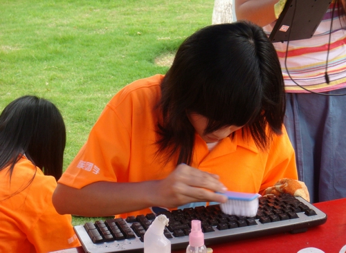 商英南校区学生党支部的党员和入党积极分子组成了一支认真的服务队伍。他们一丝不苟的清理着每一个键盘,每一个工作人员都高度负责,仔细地用清洗工具将键盘中的污垢清理干净。