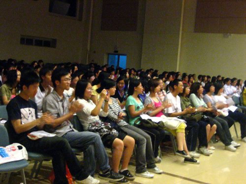 在第一轮比赛中,首先由A组的英文学院队伍Storm,对阵B组商英新生组成的队伍Star。双方就“The financial recession poses more opportunities or more threats for college graduates to realize their value of life ”这一辩题展开激烈辩论。在自由辩论阶段,双方针对对方观点做出精彩反驳,针尖对麦芒,思维火花四射。精彩的辩论赢得了在场观众的阵阵掌声。