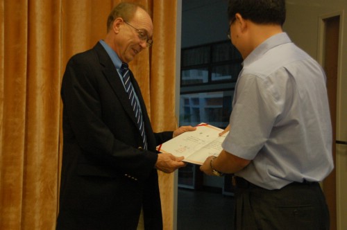 此外,英文学院正式聘请Lyle F. Bachman为该院的客座教授,并授予Lyle F. Bachman客座教授证书。