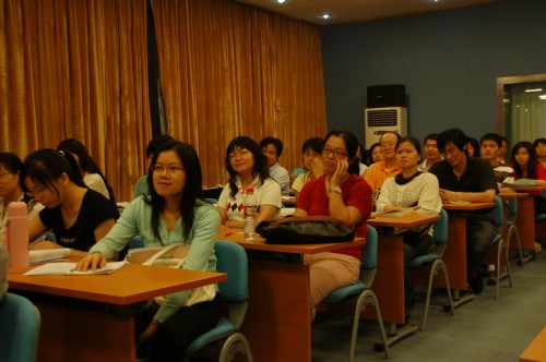 Lyle F. Bachman教授的表述风趣幽默,不时引来台下师生欢笑声阵阵,现场气氛极其活跃。他旁征博引,运用了大量生动翔实的例子,使原本枯燥难懂的理论变得更易于理解。