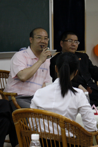 在访谈后的讨论环节中,同学们积极发言,说出了自己的感想,而三位老师也认真细致地为每位同学解答疑问,讲座再次宣起一轮高潮。最后,三位老师为同学们推荐了《富爸爸穷爸爸》、《秘密》、《弟子规》、《价值转乾坤》等数目共同学们研读。