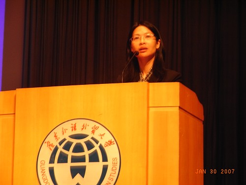 随后,彭巧玲热情地为准备参加这届广交会实习的同学进行了培训。她指出,在当今世界金融危机对经济实体的冲击进一步加深的背景下,举行本届广交会的意义非凡。接着,她又详细地为同学们介绍了在外事工作中所要注意的基本事项、接待外宾时应有的礼仪惯例以及相关业务概况。同时她希望同学们不论被分配到哪个岗位,都要认真对待工作。最后,彭巧玲对参加广交会的同学提出了三点要求:一、统一认识,积极投入;二、认真负责,专业高效;三、纪律严明、健康安全。