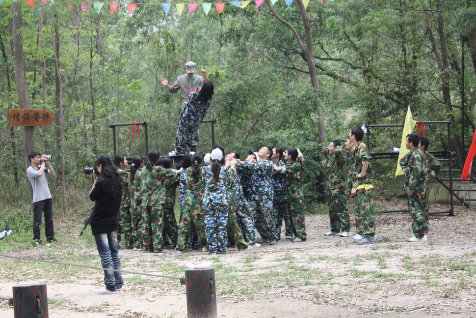 4月11日,全体师生党员在芙蓉素质拓展训练基地进行了长达5小时的项目拓展训练。在拓展训练中,师生随机分成4支队伍,分别冠以“霹雳虎队”、“冲锋舟队”、“野狼队”和“蟋蟀队”,展开了团结与协作的紧张比赛和训练。在各具特色的团队风采展示后,通过新奇的破冰项目,放松团队氛围,消除师生彼此间的隔阂,让师生尽快融入到团队,熔炼团队精神,有效的加强了师生间的沟通交流与合作。