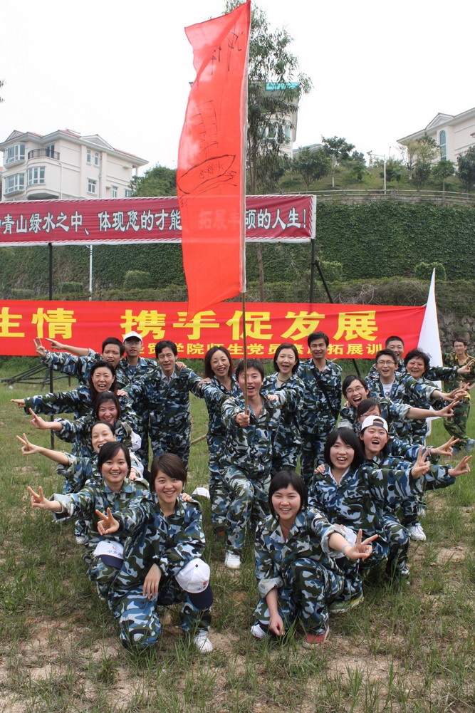 本网讯 2009年4月10日-11日,经贸学院教工党员、学生党支部书记及学生党建研究会干部共80余人,在党委书记何传添、副书记康为茂和副院长林吉双的带领下,赴广州花都区芙蓉嶂拓展训练基地开展了一次以“凝聚师生情,携手促发展”为主题的师生党员素质拓展训练活动。此次拓展训练,是经贸学院党委为增进师生交流,促进学院教风、学风建设的重要举措之一。