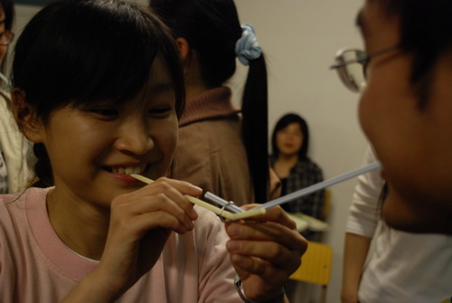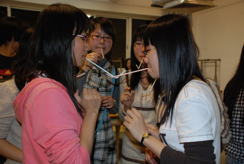 各组选手都是行动派,二话不说,七手八脚而上,不管什么设计思路都试试再说;第一轮内部混战让各组内“实践派”纷纷倒台,“理论派”应运而生且百家争鸣,屋顶式能屹立还是三角结构岿然不到,早已束之高阁的高中数理原理被瞬间召回用来头脑风暴。“时间到!”这一声真是惊悚,几幢颤颤巍巍的哥特式建筑在哗然声中立时出险,眼疾手快的忙启动应急预案予以“抢修”。