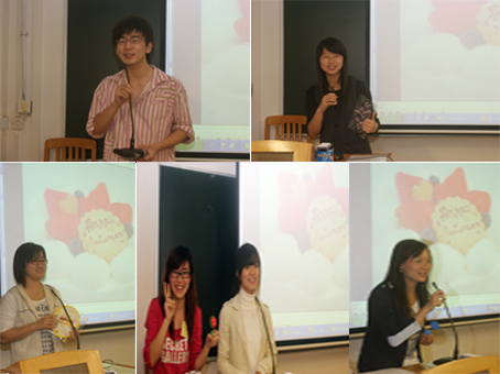 “我真是太幸运了,刚到新闻社就有礼物送给我。其实我的生日在暑假,不过要不趁早解决到时候肯定是被大家遗忘的对象。谢谢新闻社的礼物!”
