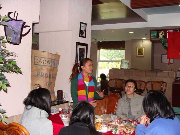 另讯 当日上午10时许,学校相关部门负责人、部分辅导员也和南校区留校的同学们欢聚于云山水榭咖啡屋。大家围坐在一起,剥着橘子,吃着花生,欢声笑语,其乐融融。