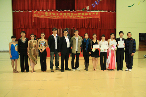 出席本次比赛的嘉宾有校体育部副主任李旭武、体育舞蹈老师周俊飞、师小蕴。裁判员为师小蕴、梁俏梅及三名华师体育科学学院体育舞蹈专业的学生。