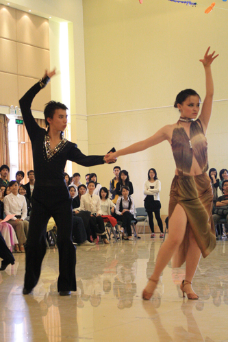 随着轻快俏皮的音乐,欢快的恰恰让在场的观众眼花缭乱。身着银色抹胸比赛服的67号选手段小艳和尹晓玲舞态花俏,舞步利落,节奏感极强,加之两人顽皮可爱的舞姿和默契的配合摘得恰恰女女组合桂冠。而在男女组合的比赛中,不久前在省第四届大学生体育舞蹈锦标赛中,取得优异成绩的70号组合吕炜钦、霍泳珊以其超群的舞技,极默契的眼神交流赢得了场下观众的阵阵掌声。最终,他们毫无悬念地夺得冠军。