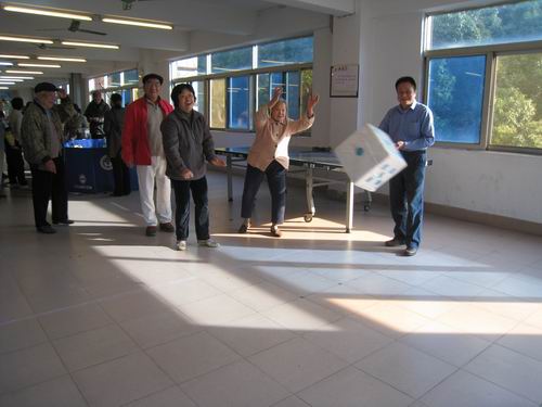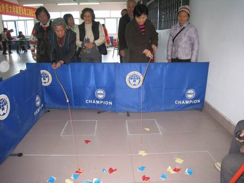 编者按 为迎接新年,活跃和丰富老同志的精神、文娱生活,离退处于12月25日在教工活动中心四楼举行集文娱、游戏于一体的老同志迎新游园联欢会。参加游园联欢会的有住在校内和广州各个点的离退休老同志共300多人。饶有趣味的众多游戏项目如瞎子摸象、青蛙跳水、幸运转盘、门球射门、吊瓶、飞标、猜谜等,吸引了不少老同志排队一试身手。两个多小时的游园大厅充满欢声笑语,气氛热烈,群情激烈,成了欢乐的海洋。