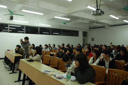 这位妙语连珠的演讲者就是研究爱情心理理论长达23年,处理过数百校内外爱情个案,主授《大学生心理与训练》、《社会心理学》和《爱情心理学》的政管学院副教授韩娟美。