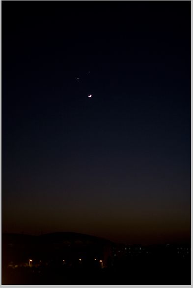 对此,广东天文学会(以下简称“学会”)早有预告:十二月一日夜幕降临后,夜空中最明亮的三颗天体——弯月、金星和木星将在西南方的低空齐齐汇聚在人马座。只要天色晴朗,中国各地乃至东半球大部分地区都可观赏到这少见而特殊的天象。