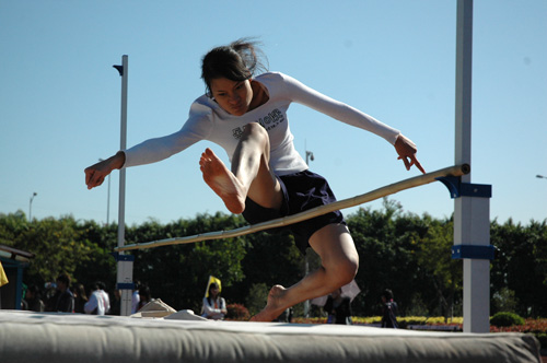 背跃与跨越的较量中,管理的29号选手利焕仪毫无悬念地轻松夺金,连续4年摘得校运会女子跳高项目的金牌。遗憾的是她未能刷新自己的记录,在试跳1米56时失手。来自商英的唐一人与来自信息学院的张慧珊分别以1米35与1米30位列二、三。