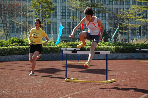 跨越栏架,刷新纪录(图/实习生 苏俊鸿)