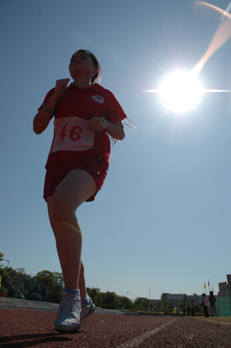 尽管阳光强烈,但参加女子3000米的选手们都坚持跑完了全程。