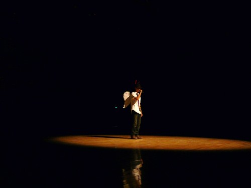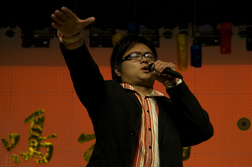 大喇叭中传出似幻的声音,“走在半空中,要人命的风,就快要把我吹落。”昏黄的舞台灯光,燃烧的香烟,孤独的身影,04号欧昌健用他磁性而又慵懒的嗓音,唱出了《走钢索的人》的无奈与悲戚。