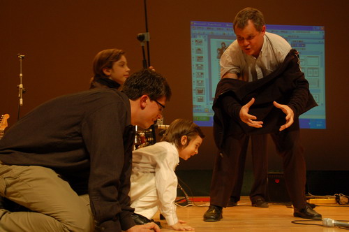 在音乐会的过程中,Sparks的成员们还配合PPT,给观众带来诸如乐器各个部位名称和作用介绍以及不同风格流行音乐的起源发展等诸多相关知识。全场积极互动,情绪高涨。成员们还奉上他们精心准备的短剧“The Rock in the Road”,幽默夸张的表演让观众惊喜连连,笑声不断。