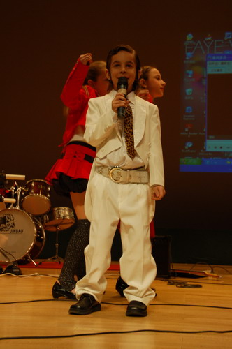接下来依次上场的“歌手”们引起了全场的轰动——四位外国小朋友,分别用他们稚嫩的嗓音和可爱的舞蹈为全场带来了风格各异的流行音乐。其中6岁的Keith带来的动感十足的Rock’n’Roll,仿佛一个小猫王活脱脱地展现在观众面前。