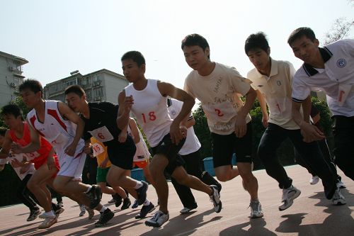 男子青年组1500m的比赛吸引了全场观众的目光。南国商学院邓辉红一路领先,毫无悬念地夺得了冠军。邓辉红冲过终点线之后,马上有裁判上来祝贺他——他打破了校记录并将原记录提高了4秒。